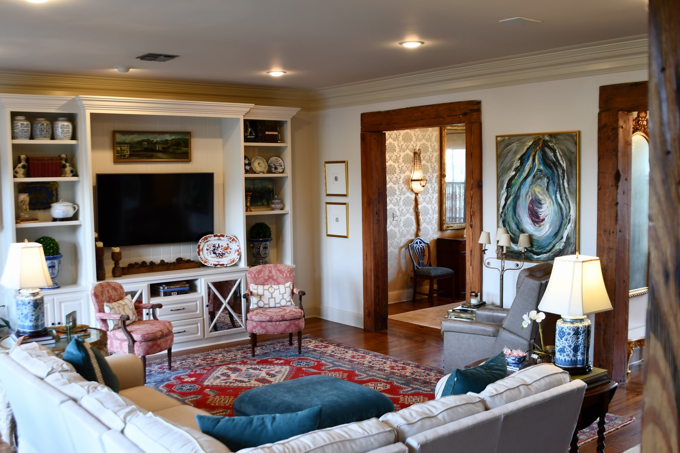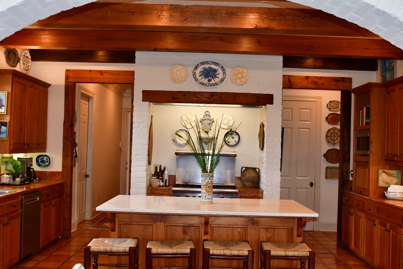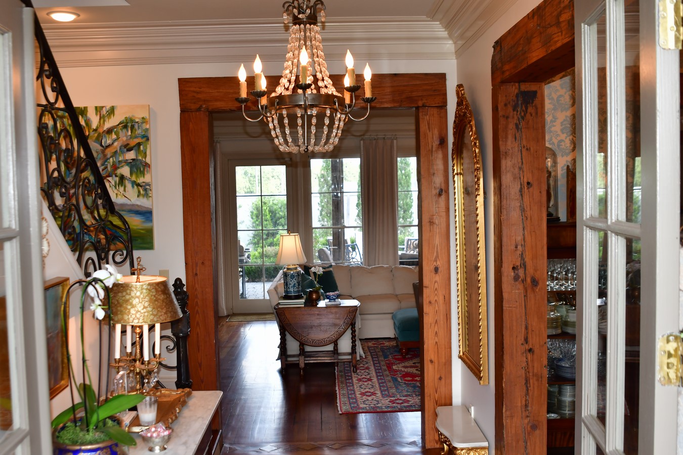 Beautiful home located in peaceful, family oriented neighborhood in south Lafayette. Stunning home located in family friendly neighborhood off E. Peck Boulevard. This Gossen custom built home is a must see that has been totally updated and includes amenities such as, triple custom crown molding, antique pine beams, heart of pine flooring with Italian marble inlay in foyer, brick accents and custom iron banister. Kitchen has stainless steel appliances, industrial stove, marble and tile countertops and includes a large walk-in pantry and butler pantry. Travertine countertops and flooring in baths. Plenty of living space with keeping room off the kitchen, large den and dining room that can be used for formal or every day. Keeping room features a fireplace with a spacious open view. First floor includes a master bedroom/bath and second bedroom or media room with full bath. Upstairs you will find a bonus room and 3 bedrooms with 2 full baths. The updated and lighted backyard oasis includes a sitting area and outdoor fire pit & patio with brick pavers. Watch football games from your outdoor TV or enjoy fall evenings by the fire. Great home for entertaining! This home is not located in a flood zone and has never flooded.