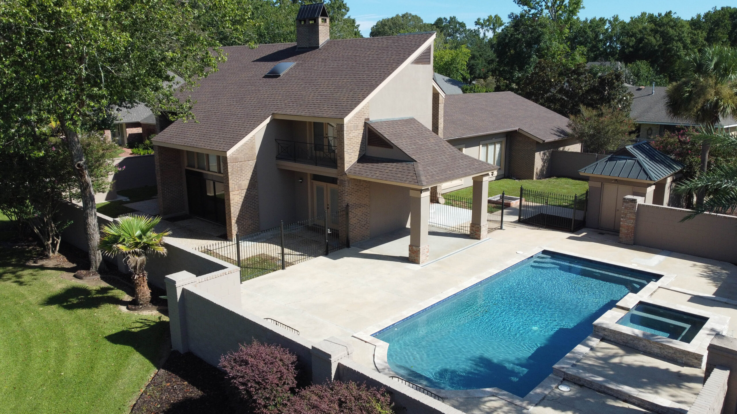 101 Hunters Hollow located in Settlement Subdivision near Lourdes & Wommens Hospitals. -Custom wrought iron gates and balcony rails -Security Wall surrounds entire compartmentalized yard -Three car garage with 5 additional parking spaces -Corner lot, High elevation, NO Flood zone -Gunite Lux pool with waterfall, Cabana and Pool Bath house -Double Brazilian mahogany entrance doors -Copper roofed gatehouse and gutters -Soaring ceilings with sold wood beams and sky lights -Saferoom -Formal living and Dining with rare Australian Cypress floors -Open kitchen with breakfast area and keeping room with fireplace -Kitchen boasts a double oven, microwave, brand new Italian Bertazzoni Stove, built-in buffet and desk -Kitchen rare top grade travertine tiles with granite inserts -Lard Den with masonry fireplace, floor to ceiling windows, Travertine tile -Master Suite downstairs with fireplace, master bath, double lavatories, vanity makeup, double walk-in closets -Large office downstairs with french doors to courtyard -Upstairs 3 additional bedrooms, 2 full baths, loft casual space between bedrooms, Walk out balconies -Lark walk-in Holiday storage closet.