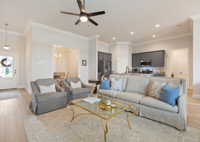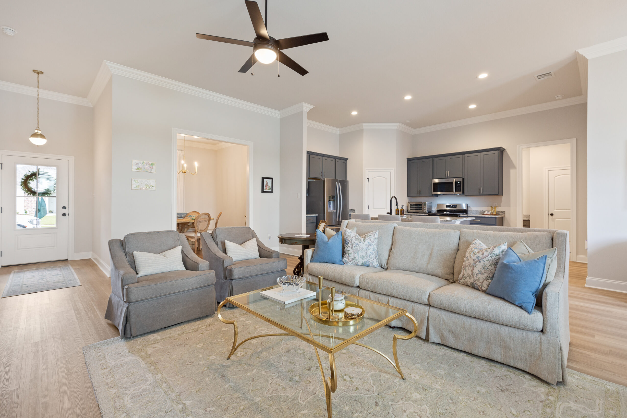Welcome to Acadian Meadows! Step into this beautifully maintained 3-bedroom, 2-bath home featuring both a flex space ideal for a dining room, playroom, or additional living area and a built-in desk nook thats perfect for working or studying from home. The inviting floor plan offers a spacious kitchen with a gas stove, large walk-in pantry, and plenty of storage throughout. Additional features include luxury vinyl plank flooring, 2 master closets, structured wiring panel box, smart connect Wi-Fi thermostat, tankless gas water heater, low E tilt-in windows, post tension slab and an active termite bond. Enjoy modern comforts of window treatments included in every room. Outside, take in the peaceful pond views from your backyard with no backyard neighbors, the perfect spot to relax with your morning coffee or unwind after a long day. This home offers the perfect blend of comfort and functionality ready for you to move right in and make it your own!