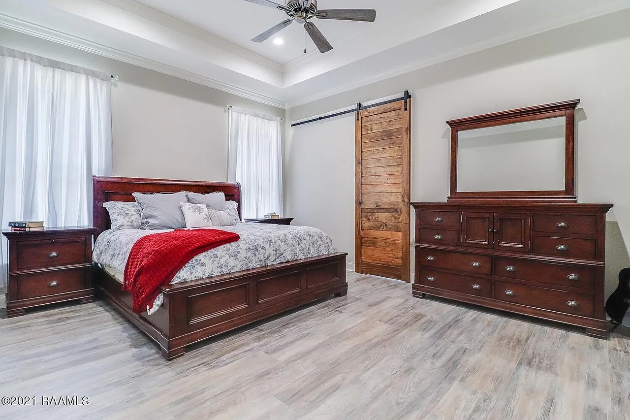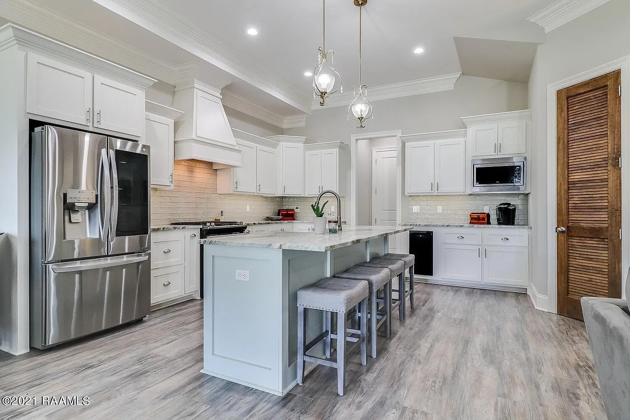This beautiful 3-bedroom, 2-bath Acadian Style Farmhouse features an open floor plan and is located in the highly desirable Woodlands of Acadiana–a thoughtfully planned community with a resort-style pool, walking trails, and a 4-acre park.The kitchen is a true highlight, offering a large island, gas stove, Procraft cabinetry, slab granite countertops, designer lighting, and energy-efficient appliances–perfect for cooking and entertaining.The spacious primary suite includes a luxurious bathroom with a standalone tub, separate shower, and a huge walk-in closet. Additional features include Moen fixtures and a Trane AC system for comfort and quality.All appliances stay including refrigerator, washer and dryer making this home truly move in ready.Come take a look at this stunning home and experience all it has to offer!