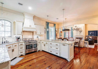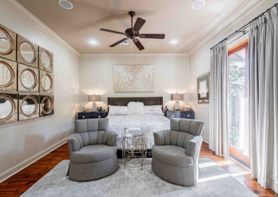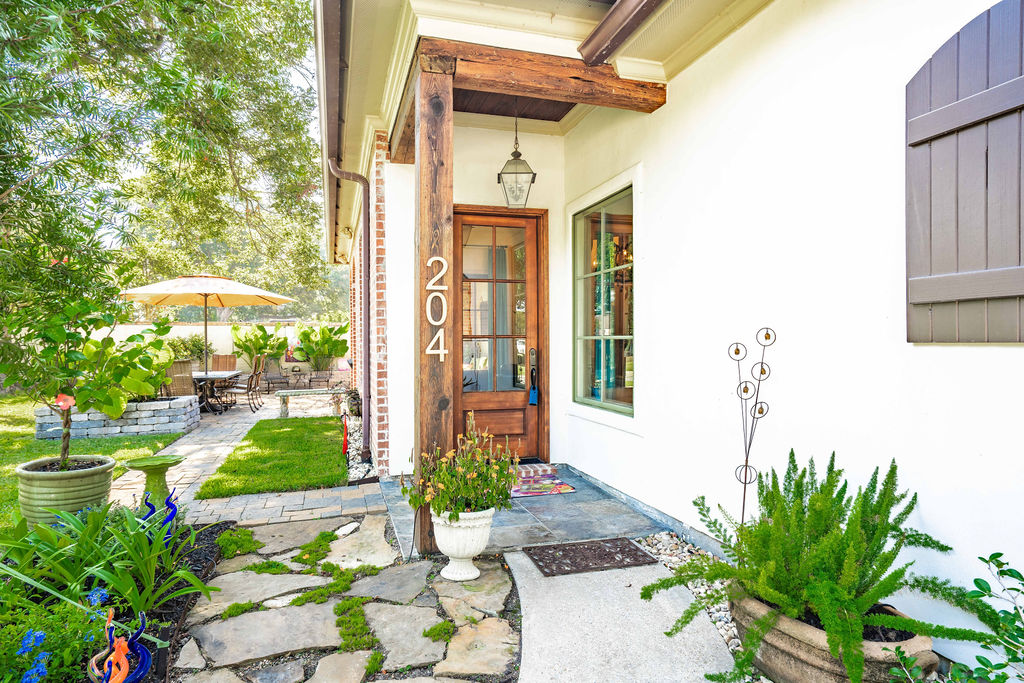 This stunning two-story home offers 4 bedrooms, 3 full baths, and a bonus office in the sought-after gated community of Vintage Park. Designed by Michael Murphy, it combines timeless character with modern comforts. The main bedroom suite is located on the first floor and opens through French doors to a private lighted courtyard—perfect for morning coffee or evening relaxation. The en suite bath features dual vanities, a soaking tub, separate shower, and a custom walk-in closet. A second bedroom and full bath are also conveniently located downstairs. The open floor plan is filled with natural light, highlighted by plaster walls, arched openings, large windows, and French doors. The living room features a cozy gas fireplace, while the spacious kitchen boasts an Italian gas stove with double ovens, granite counters, custom cabinets, a walk-in pantry, and included appliances (microwave, refrigerator, and dishwasher). Additional features include: Reclaimed antique pine floors, 9-11 ft ceilings with triple crown molding and chandeliers, Two tankless hot water heaters, Two air conditioning units (downstairs unit replaced 3 years ago; maintenance completed July 2025), Alarm system, Spacious utility room with gas/electric hookups, Two-car garage with solid wood door, New roof (September 2025). The subdivision offers mature trees, walking trails, a two-story treehouse, a baseball field with dugouts, and open space for soccer and play. The homeowners are downsizing—select furniture, artwork, and mirrors are also available for purchase.