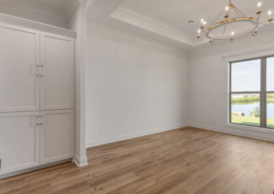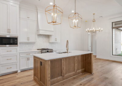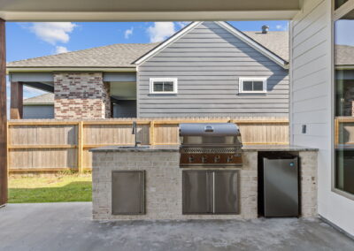 Discover unparalleled elegance in this 4-bedroom, 3-bathroom waterfront masterpiece, crafted from professionally drawn house plans and set on a beautifully landscaped lot with stunning water views. The interior impresses with a split floor plan, featuring custom cabinetry reaching the ceiling in the gourmet kitchen, paired with Frigidaire Professional Series appliances, quartz countertops, and a generous pantry. High-end Pfister, Delta, and Gerber plumbing fixtures, custom molding, and a warm gas fireplace add sophistication. Outside, entertain in style with a brick and granite outdoor kitchen equipped with a Coyote BBQ pit, sink, and space for a mini fridge. Plygem 1500 series windows and Duration shingles ensure durability, while the expansive yard maximizes the serene waterfront setting.
